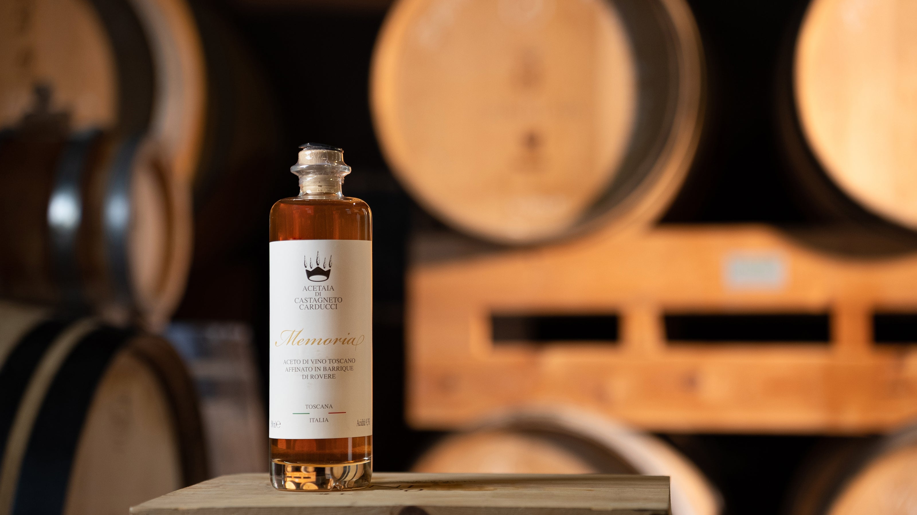 "Dalle migliori uve della celebri colline di Castagneto Carducci nasce l'aceto di altissima qualità, realizzato con passione seguendo le regole della tradizione. Un elisir naturale, capace di scatenare emozioni, evocare ricordi e fermare il tempo…"