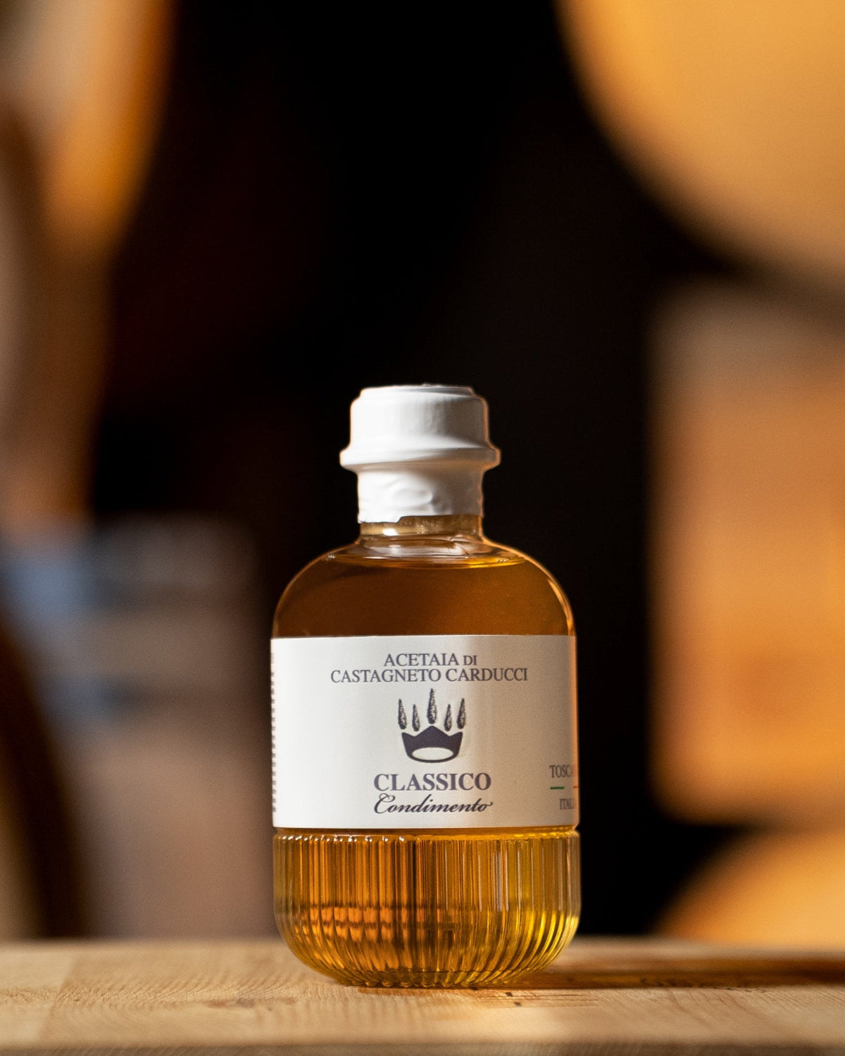 Pregiato condimento dalle note agrodolci, ottenuto dall’incontro del mosto cotto di uve bianche con l’aceto di vino bianco toscano. Il sapore è vivace, sebbene molto equilibrato. L’acidità volatile è pronunciata e bilanciata da un piacevole sentore di dolcezza. Il profumo è netto, intenso e persistente. Il colore si presenta limpido e trasparente, dal tono di ambra dorata, rendendo questo condimento particolarmente adatto a preservare il colore originario del piatto. Ottimo per accompagnare piatti di mare, in particolare il salmone, così come carni bianche e verdure fresche.